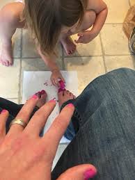 Our conversation caused me to recall a time when my own daughters had invited me to go with them to a nail salon to get a pedicure with them. Toward the end of our sprucing-experience they cajoled me into getting my toenails painted a deep blue with snowflake highlights. I agreed, just to please them, knowing I would be the only one to witness our painted-toe-pact. Yet, confidentiality was not to be so.
